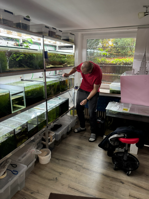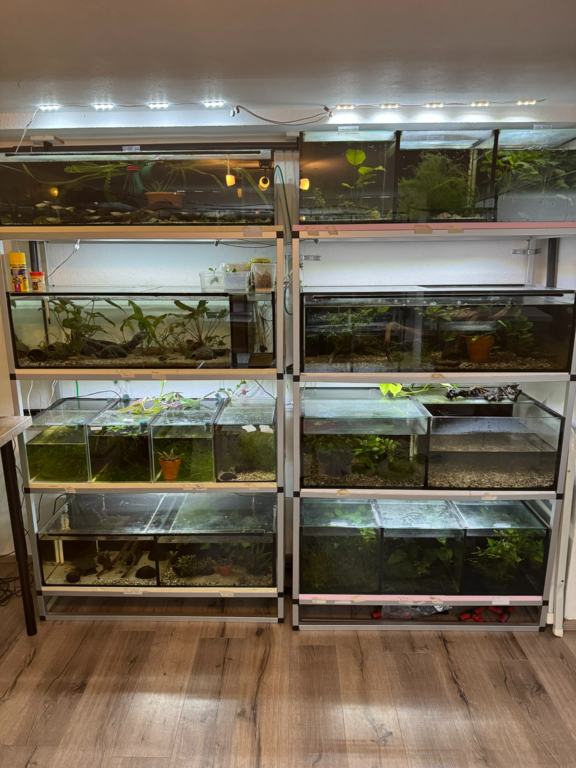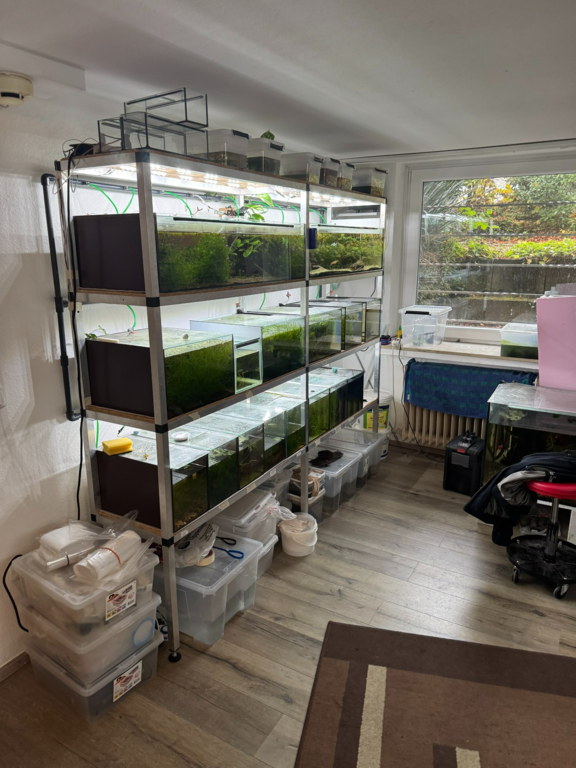 - 16. November 2025: Auf der Rückreise von einer Veranstaltung machte ich kurz Station bei Sebastian KORTE in Hamm. Sebastian betreibt einen wundeschönen und sehr gepflegten Raum im Keller seines Elternhauses. Er hält dort, neben (zumeist selbstmitgebrachten) diversen Killifischen, auch Panzerwelse, Salmler und einige Lebendgebärende Zahnkarpfen. Bevorzugt hält Sebastian diverse Rivulus-Arten. Der Besuch war ein tolles Erlebnis. Ein Männchen von L. mahdiaensis und ein Grindalansatz durften mit nach Sachsen umziehen. Vielen Dank für die Gastfreundschaft und den Einblick in dein Hobby. Hier noch einige Foto's: